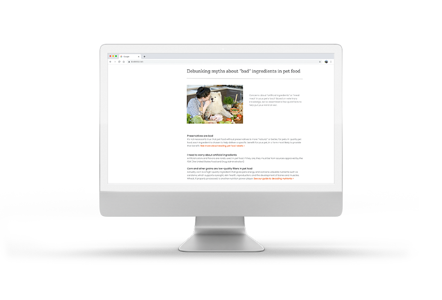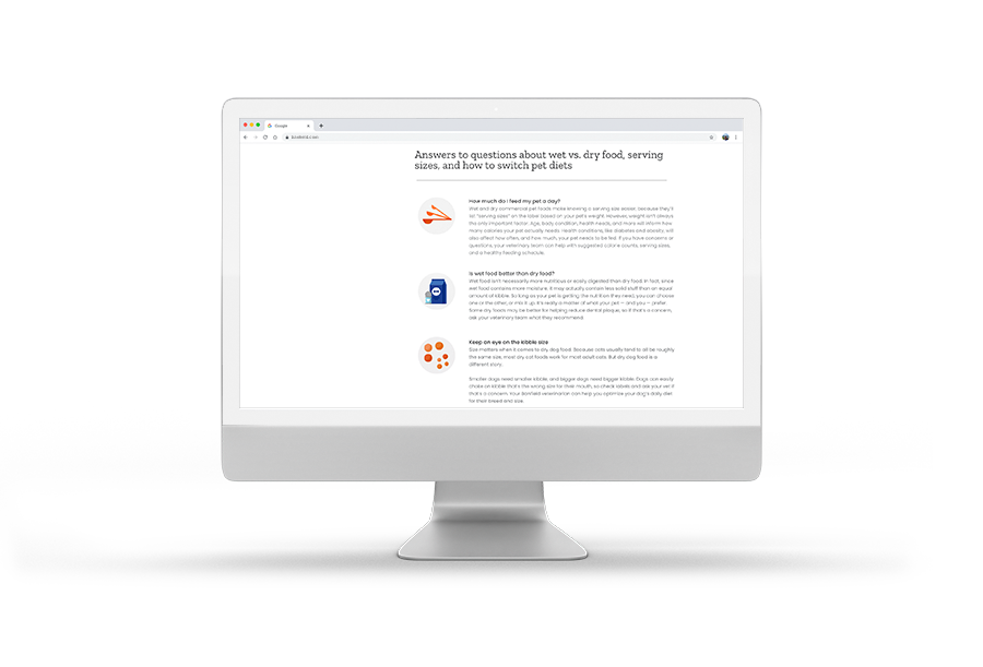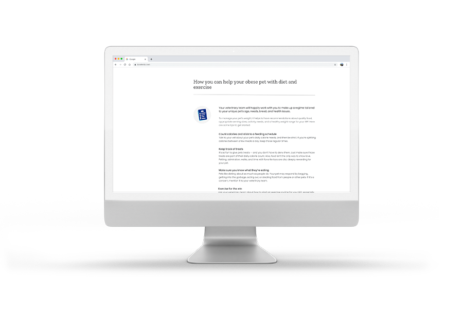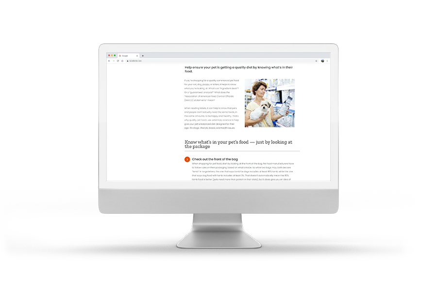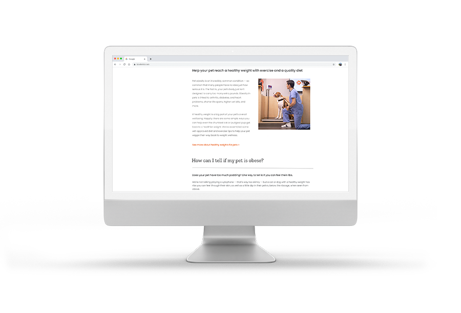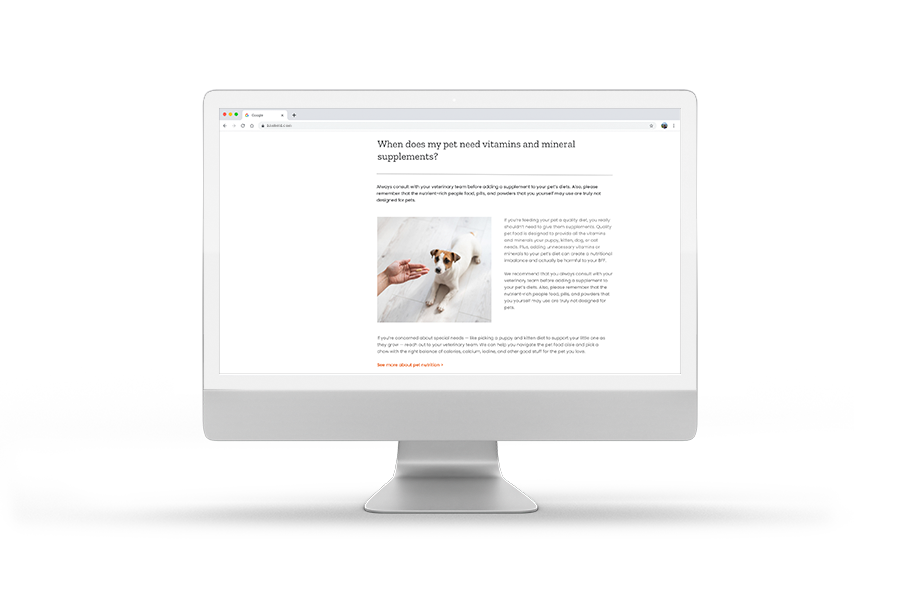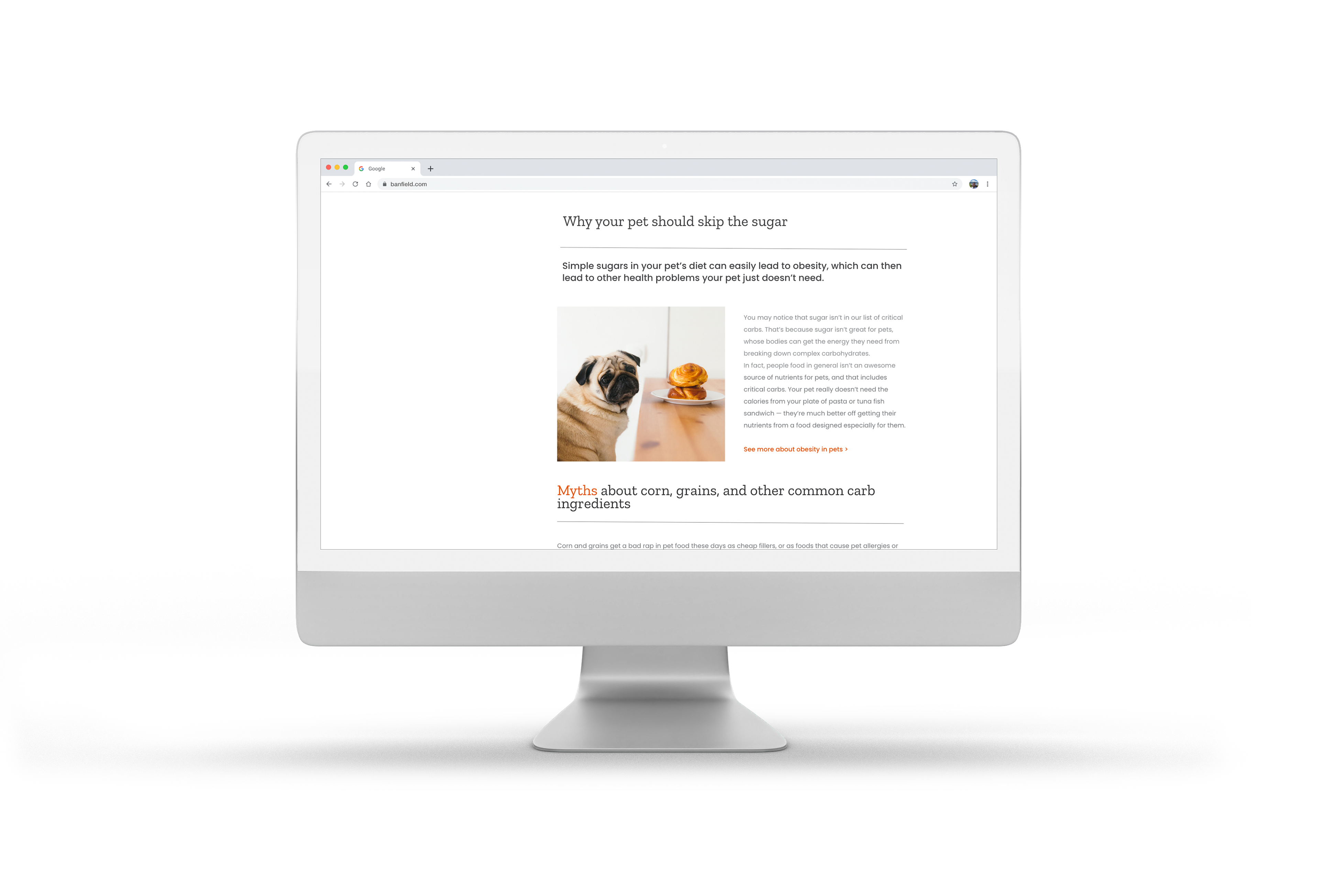 Banfield Pet Hospital had just redesigned their marketing website and sought support in building out a comprehensive library of pet resource pages. Adhering to Banfield's existing design system, I designed hundreds of pages, curating stock photography and working cross functionally with a large team of copy-writers and graphic designers.