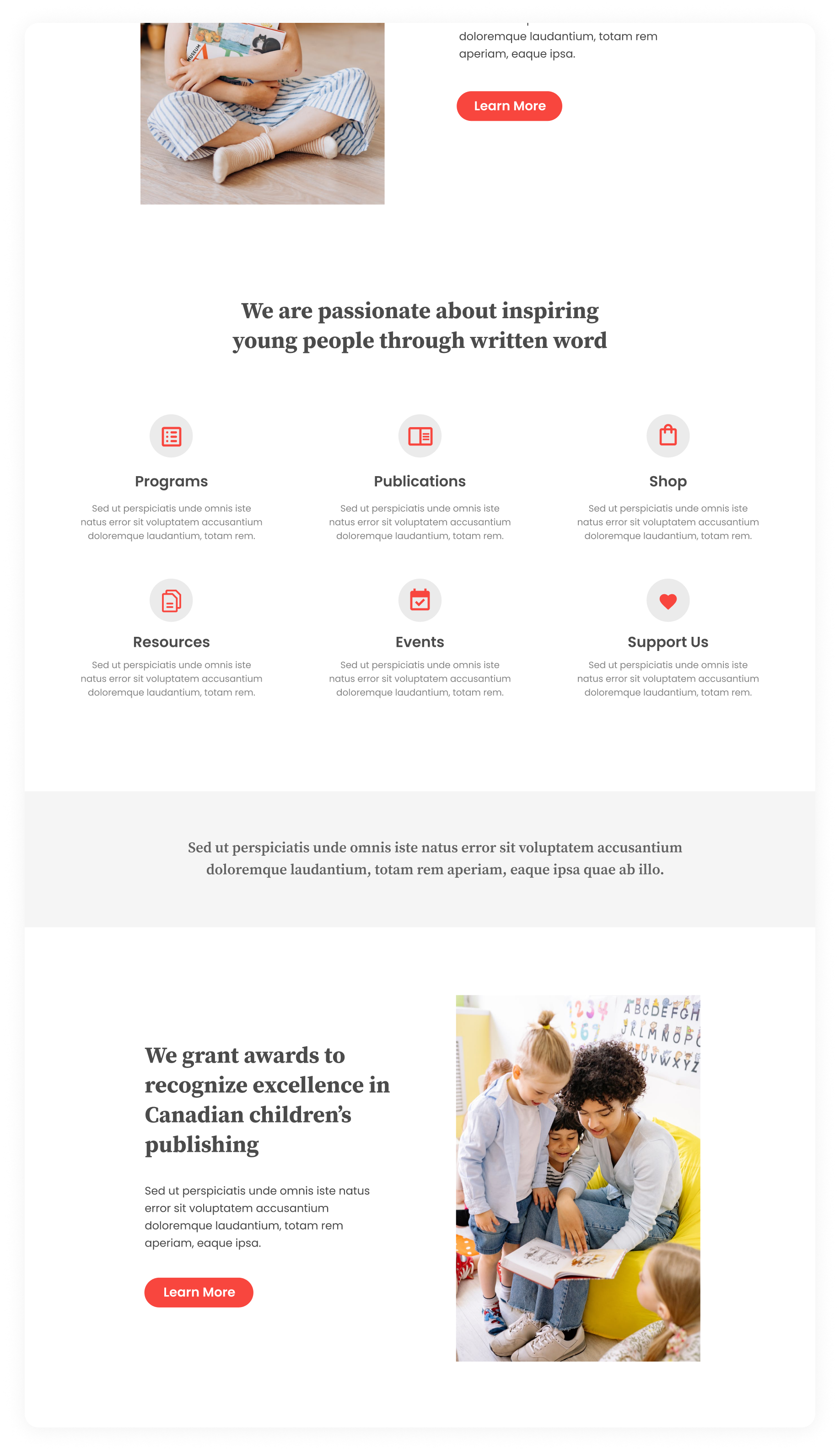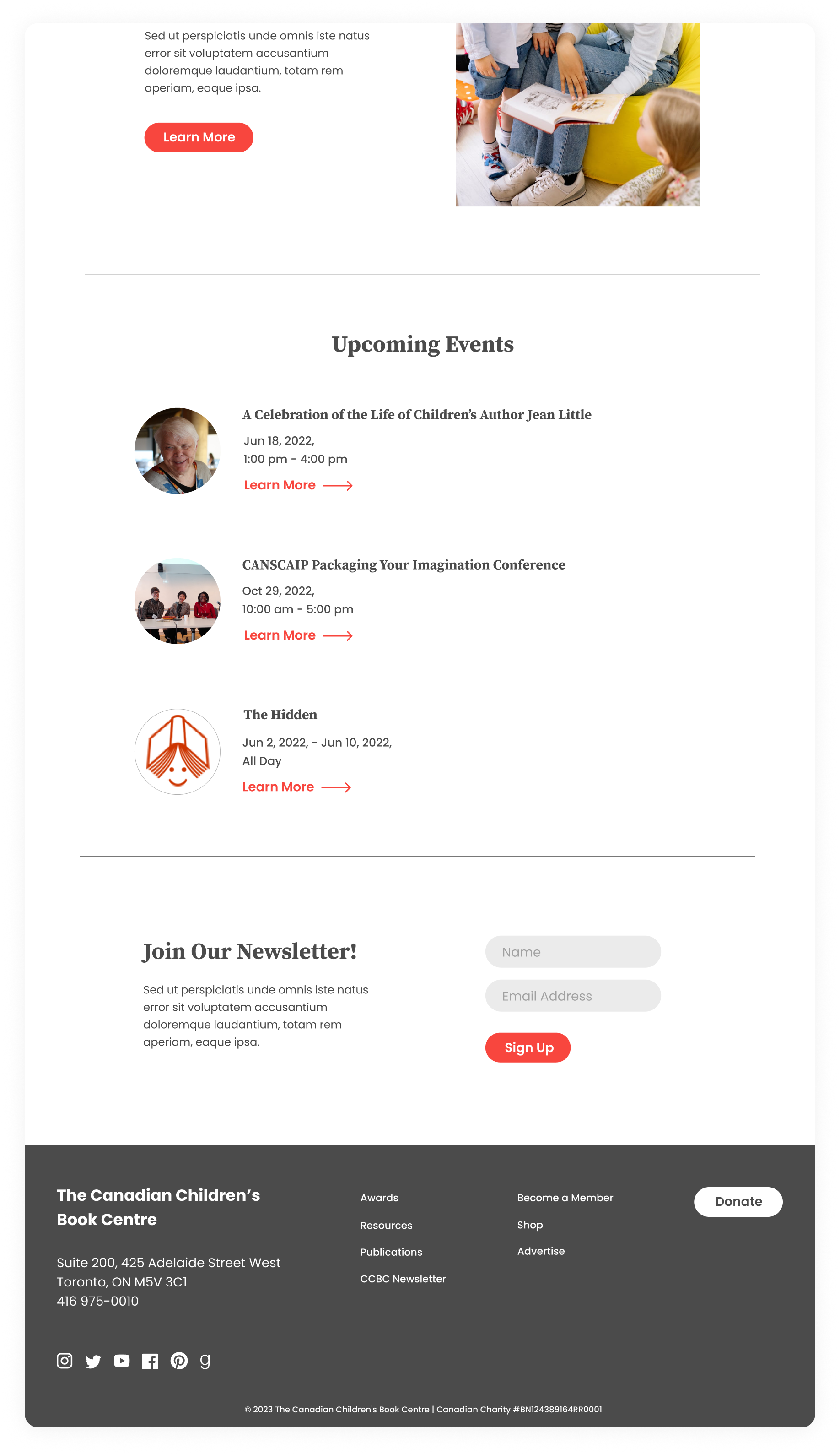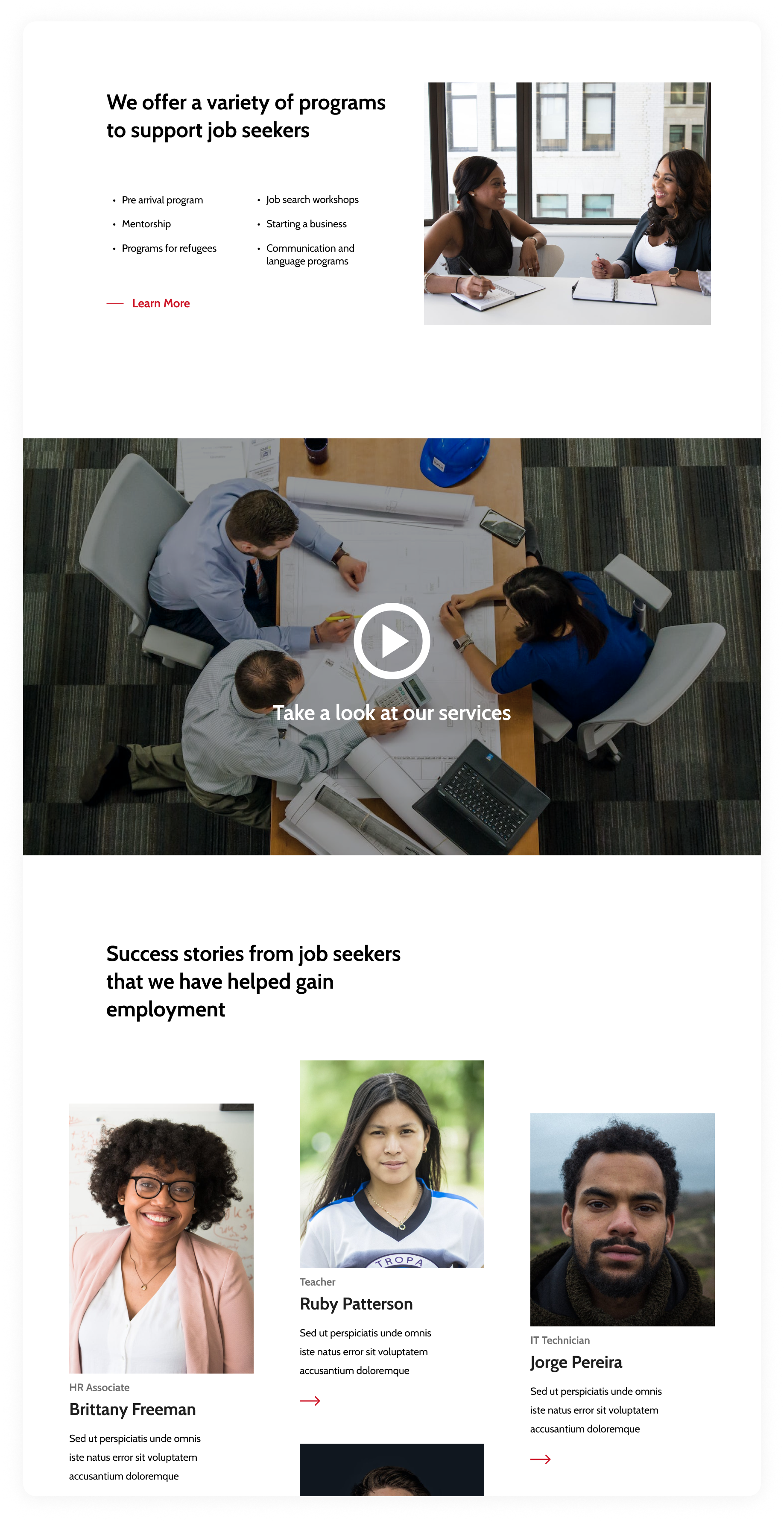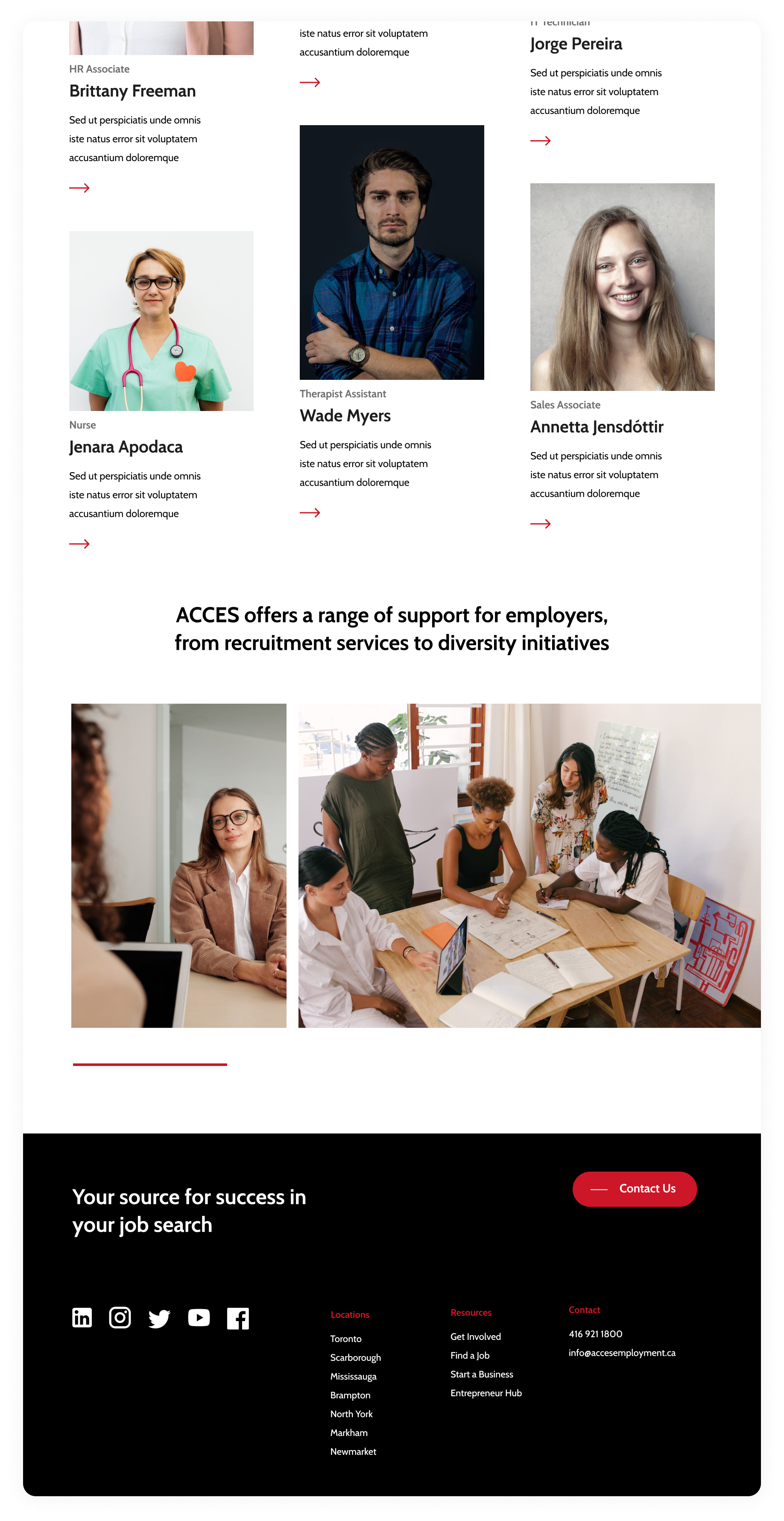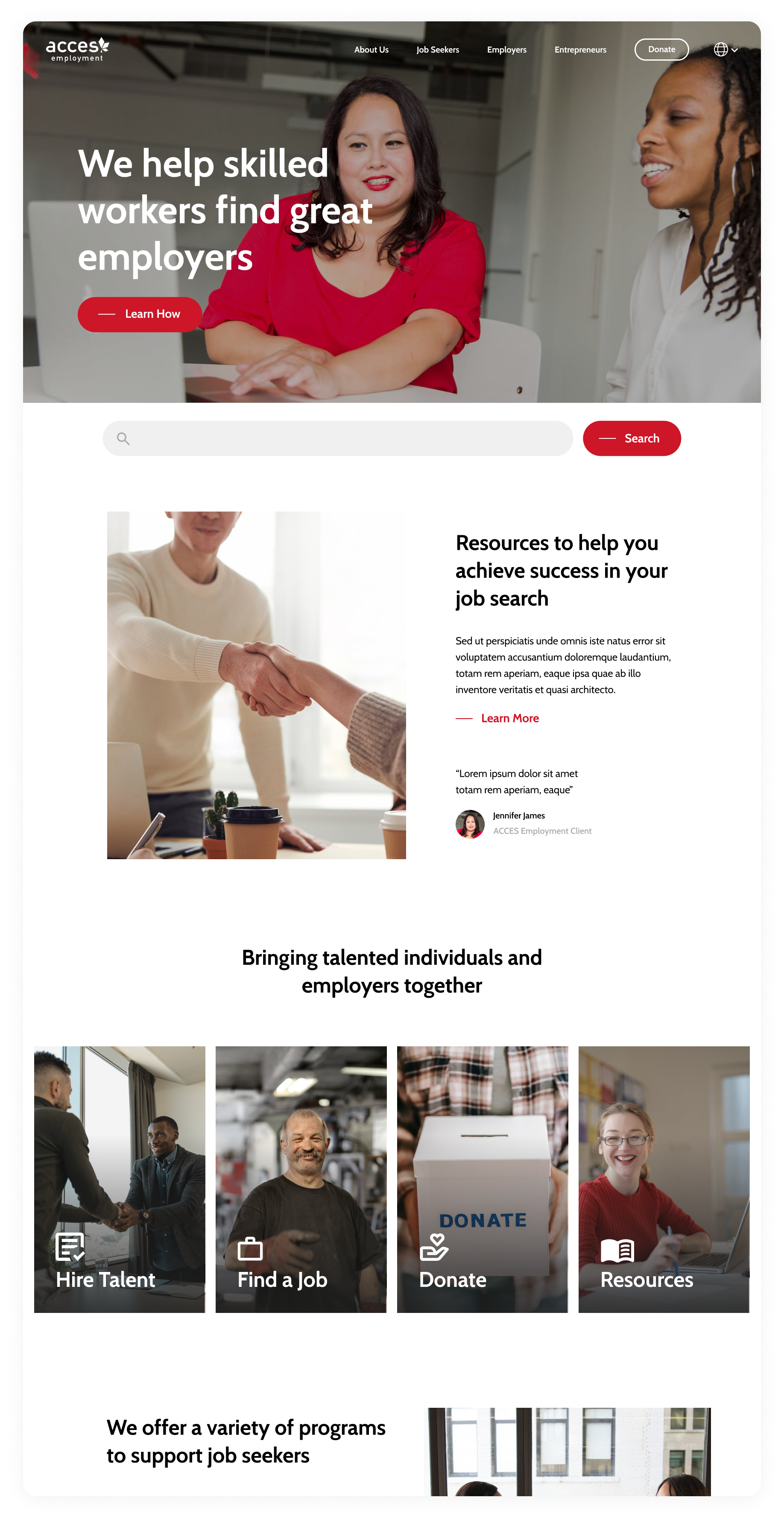 These designs concepts were created for requests for proposals for website redesigns and were presented alongside UX audit outcomes and recommendations for improvement. Each began with a website audit to identify opportunities to improve accessibility and overall UX, followed by sitemap re-design and aesthetic updates, which were shown in webpage mockups. Despite strong designs, budget misalignments unfortunately prevented the proposals from being chosen.